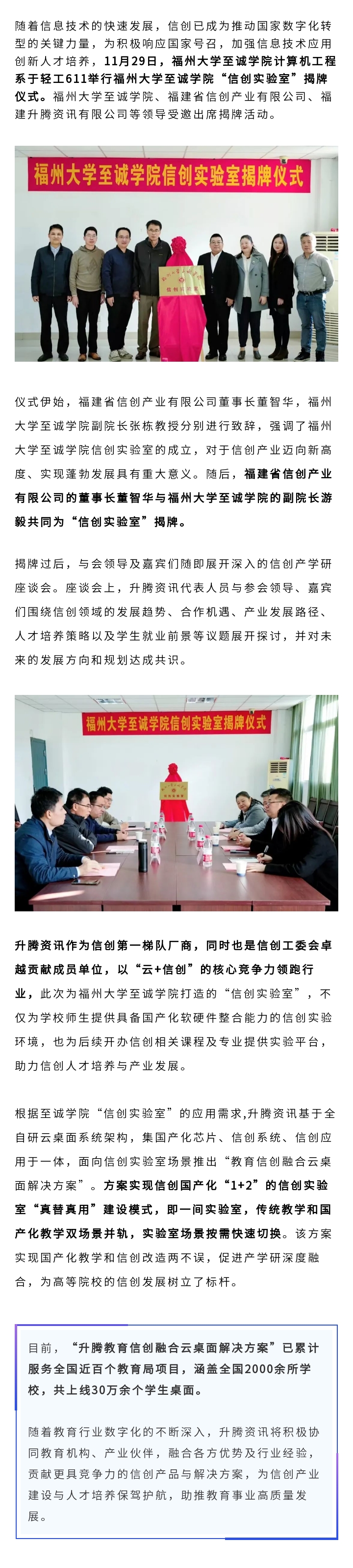 腾博会官网助力福州大学至诚学院打造“信创实验室”