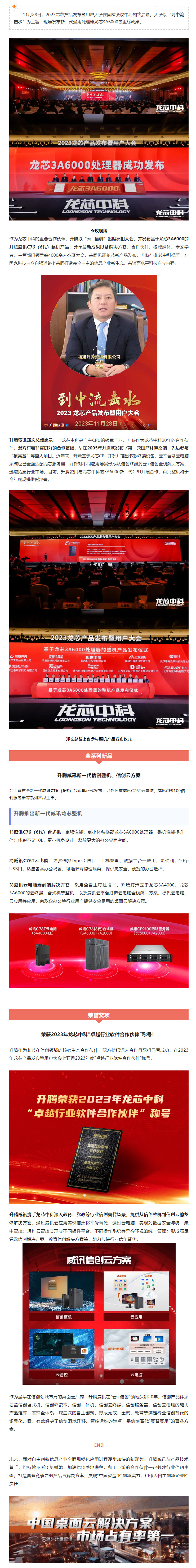龙芯大会 | 腾博会官网全新宣布威讯C76(6代)整机产品,荣膺2023年龙芯“卓越相助同伴”称呼!
