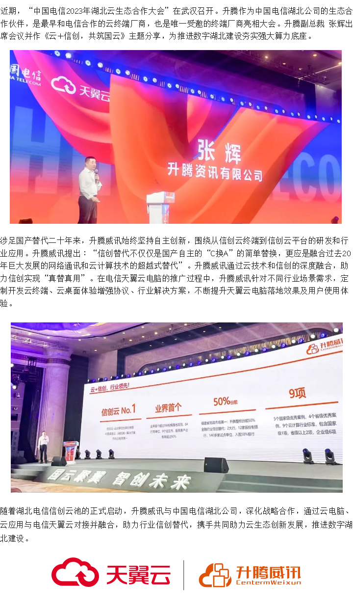 云+信创 ,共筑国云 腾博会官网威讯亮相中国电信2023年湖北云生态相助大会!