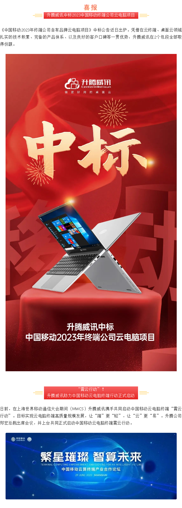 喜报!腾博会官网威讯中标2023年中国移动云电脑项目 ,助力宣布“霄云行动”