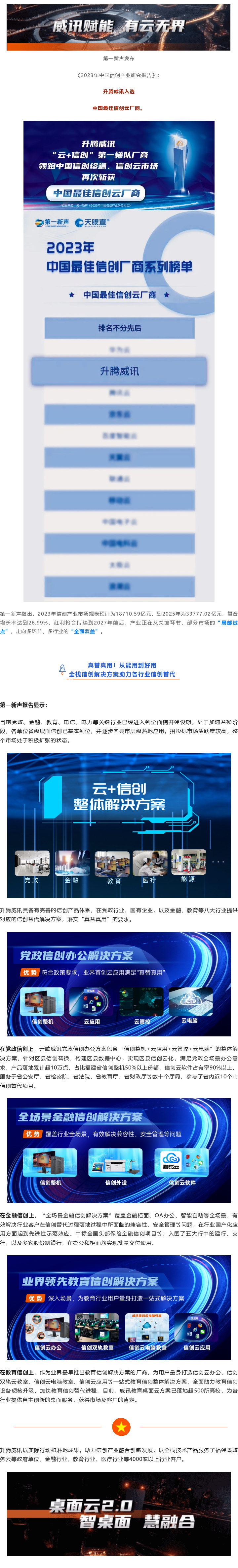 2023年中国信创工业研究报告:腾博会官网威讯斩获最佳信创云厂商!