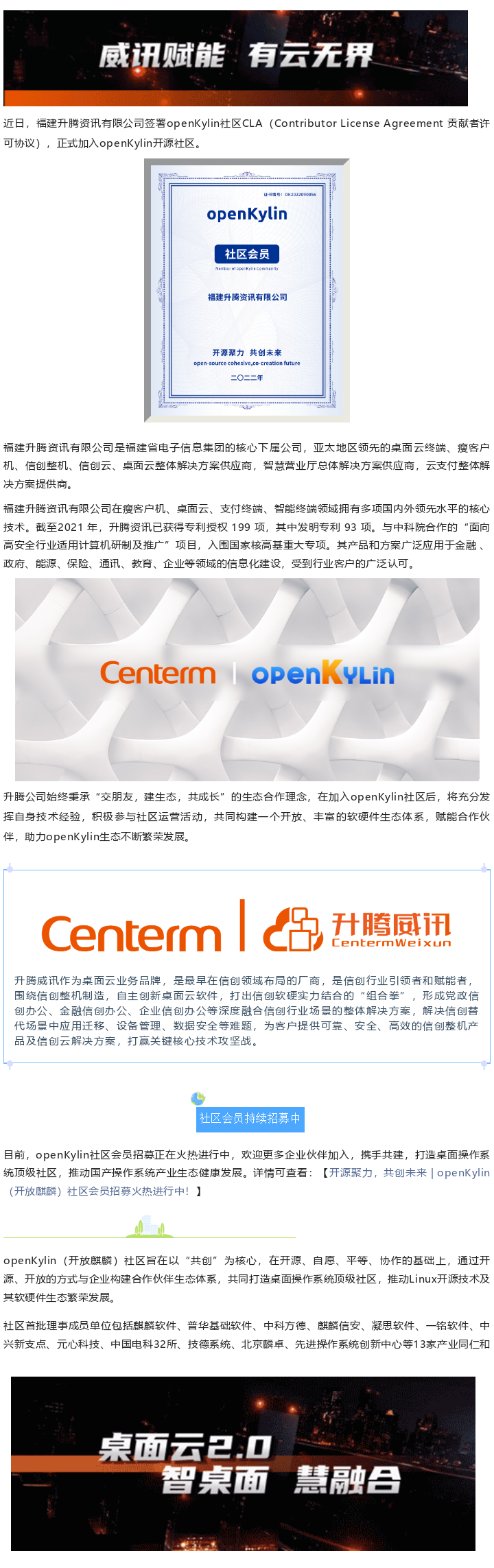 腾博会官网威讯加入openKylin,提供桌面云解决计划助力社区生长!