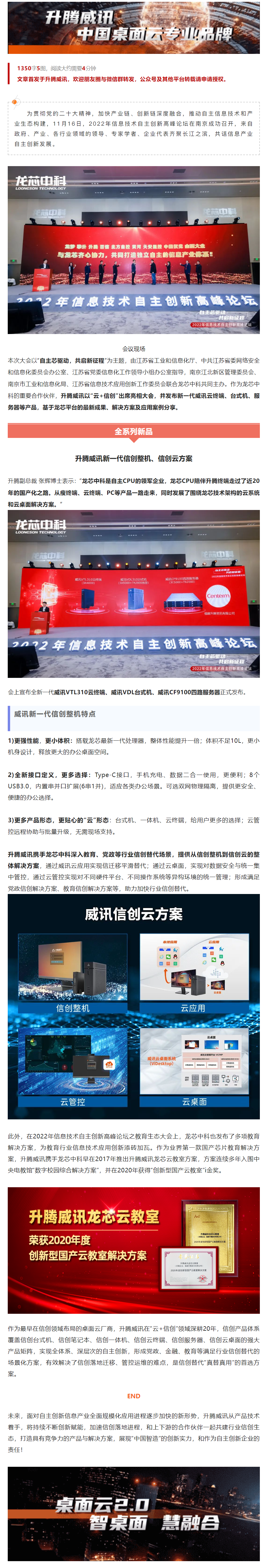 腾博会官网威讯亮相龙芯中科2022年信创岑岭论坛 ,携手共建共享“云+信创”新生态