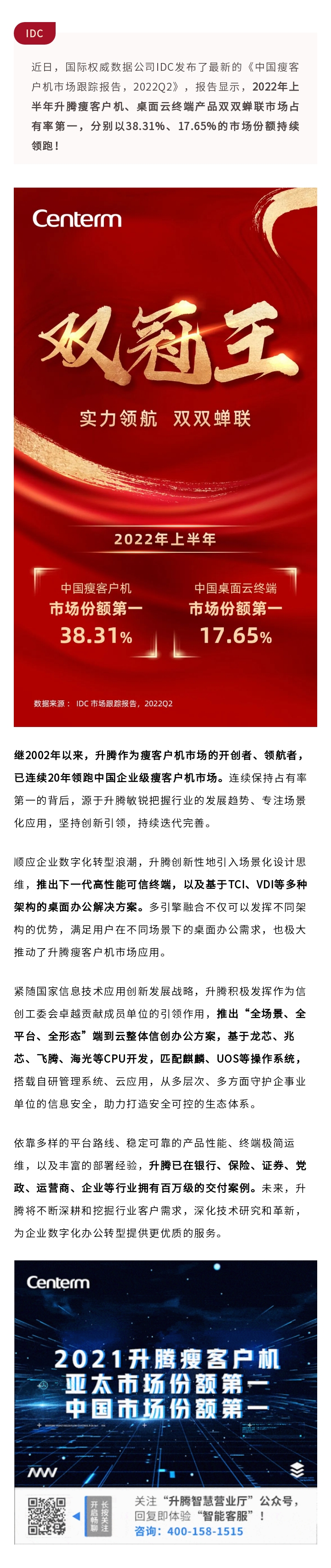 腾博会官网连任2022上半年中国瘦客户机和桌面云终端市场份额双冠王!