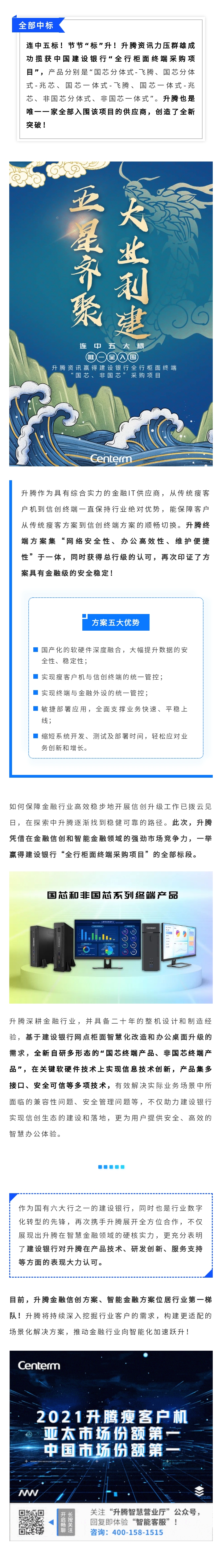 腾博会官网资讯一举揽获建设银行“全行柜面终端采购项目”!