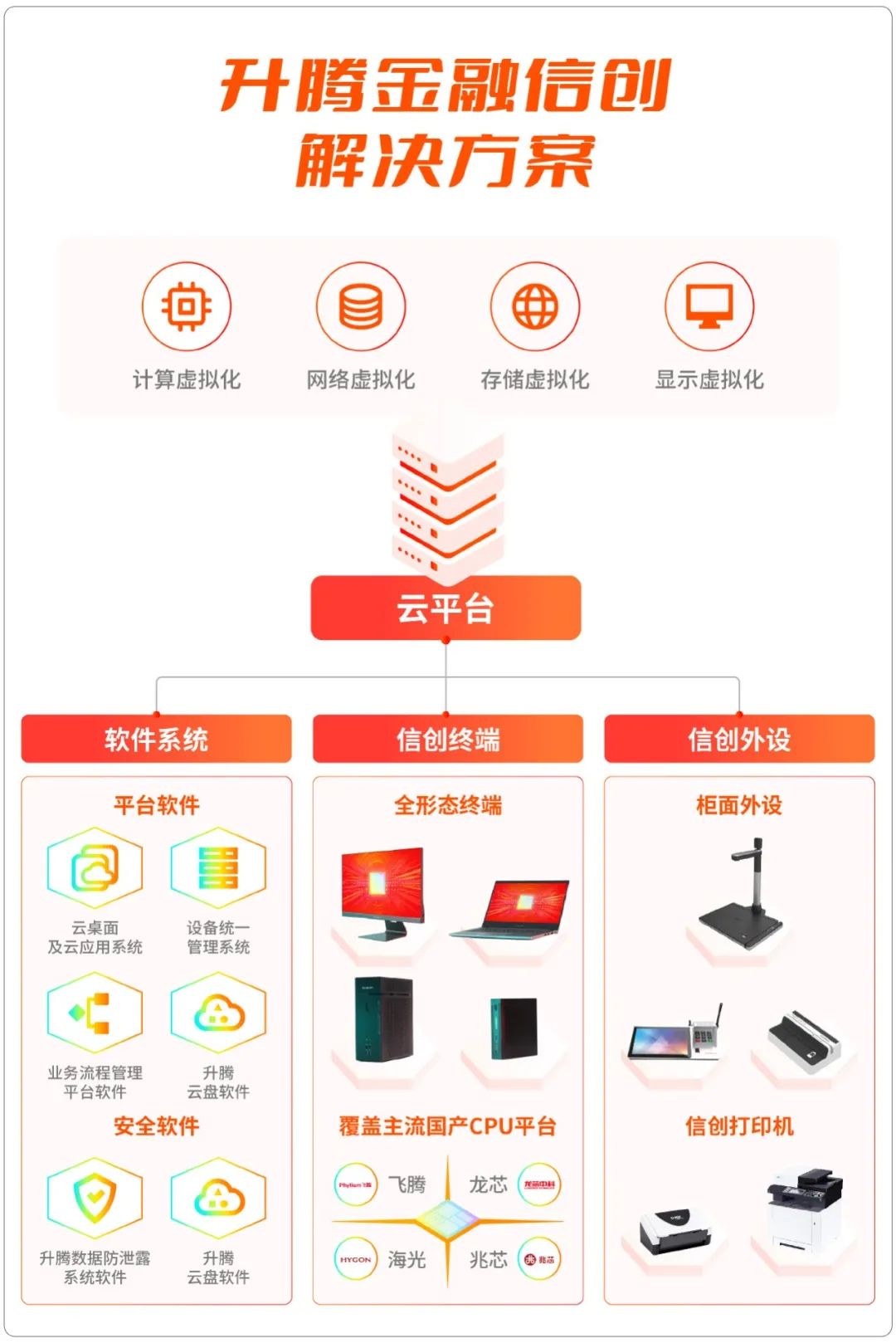 作为信创工委会成员单位,升腾积极构建信创核心能力,推出搭载龙芯、兆芯、飞腾、海光等主流国产CPU平台整机,其中涵盖了台式机、一体机、笔记本、瘦客户机等全形态终端产品,同时结合升腾桌面云自主研发实力,打造信创软硬件整体解决方案。此外,升腾在信创整机、信创云应用等关键技术创新、产业落地应用、行业标准制定、产业链合作建设及行业应用拓展等方面均表现优异。