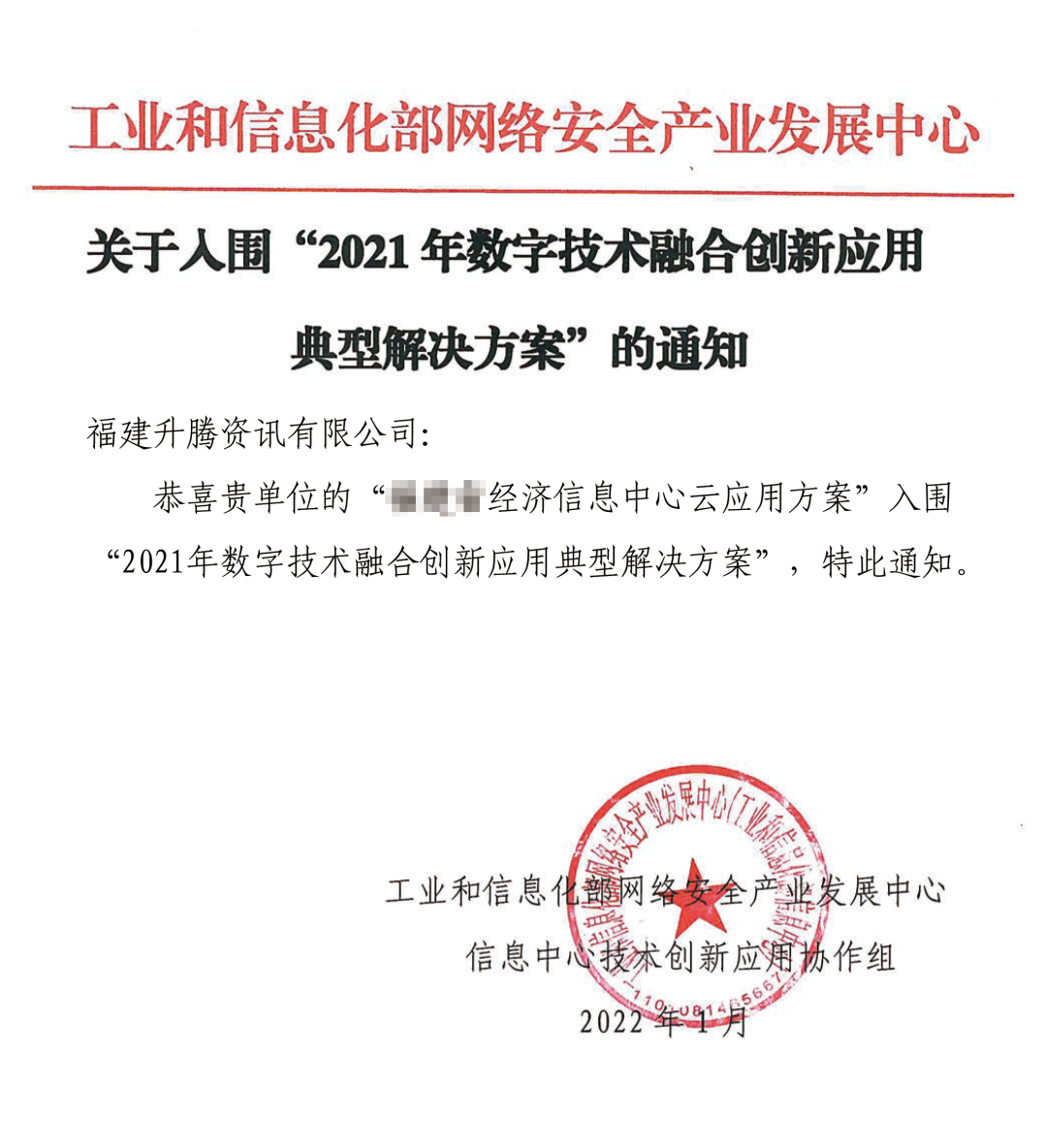 在本次评选中,升腾威讯申报的“某省经济信息中心云应用方案”凭借在技术先进性、应用示范性和产业带动性等优势脱颖而出,成功入围『2021年数字技术融合创新应用典型解决方案』。获此殊荣是该产品继入围“2021年福建省信息技术应用创新解决方案”后,又入围国家级信息技术应用创新典型解决方案,充分彰显升腾威讯在融合创新、技术驱动、自主可控、信创成果等方面获得国家权威部门认可。