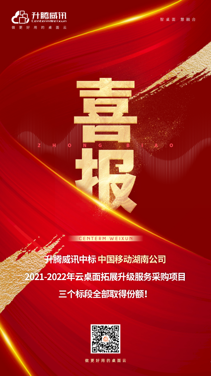近日,升腾威讯在运营商行业中标喜讯频传,在刚刚公布的中标公告中,升腾成功中标湖南移动2021-2022年云桌面拓展升级服务采购项目。升腾威讯出品的威讯云整体解决方案的3个包段全部取得份额,充分体现了升腾威讯在运营商桌面云领域的深厚底蕴和行业生态互融优势,也是升腾威讯倡导的“桌面云2.0”发展模式的又一成功案例!