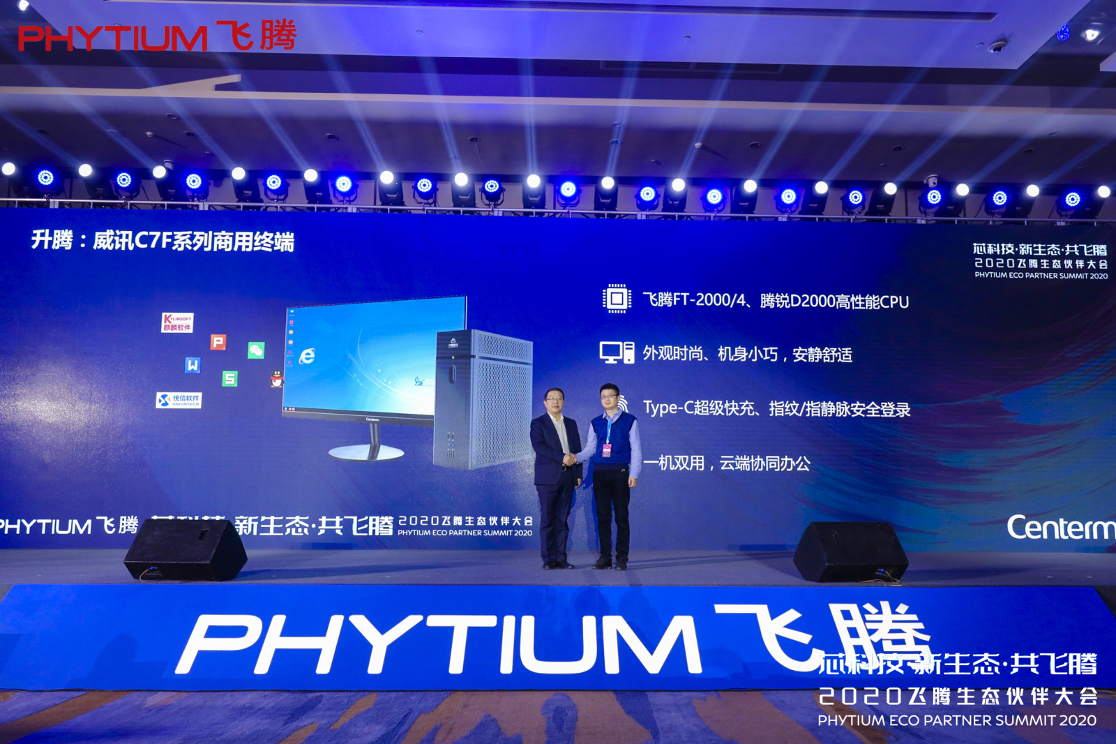 2020年12月29日,由天津飞腾信息技术有限公司主办的2020飞腾生态伙伴大会在天津盛大召开,大会以“芯科技、新生态、共飞腾”为主题,集主论坛、分论坛、生态展览于一体。作为飞腾的重要合作伙伴,升腾威讯出席亮相大会,在大会主论坛上发布了基于腾锐D2000的新一代威讯C7F系列商用终端,同时亮相生态展览现场,全面展示基于飞腾平台的威讯C7F系列整机,并结合威讯云应用、云管控等带来全新一代的威讯信创云办公方案,全面展示升腾威讯在信创领域的创新成果及标杆案例!