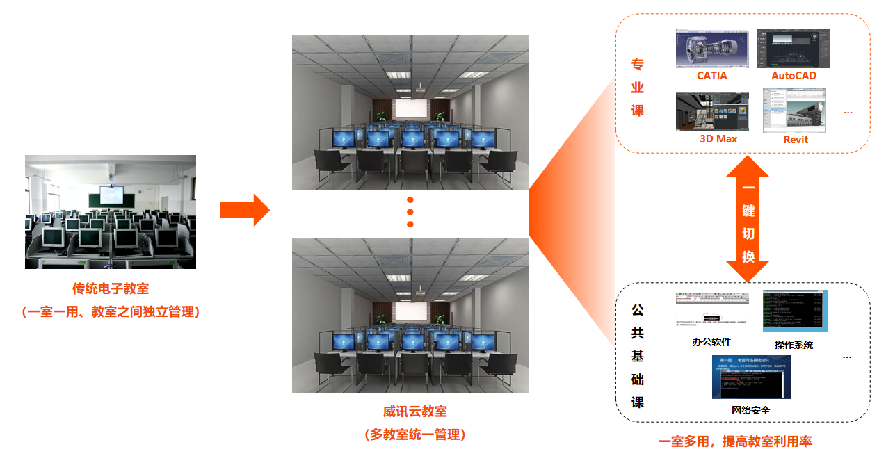 威讯云教室实现统一管理,一室多用,提高教室利用率