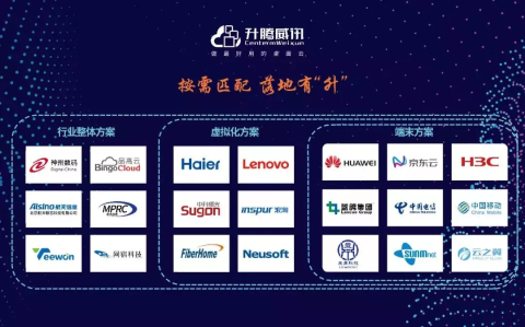 作为国内领先的桌面云厂商,升腾威讯云始终保持着全开放的合作态度,不排斥与任何合作伙伴实现不同程度的合作,只要你要,只要我有,升腾威讯云将不遗余力为大家提供从端末方案、虚拟化方案、行业整体解决方案等不同层次的桌面云产品及解决方案,帮助合作伙伴发挥自身优势,快速整合产品,以最快的速度、最成熟的产品推向市场,实现合作共赢,这是我们一直坚持的合作理念——开放合作,互融共赢。
