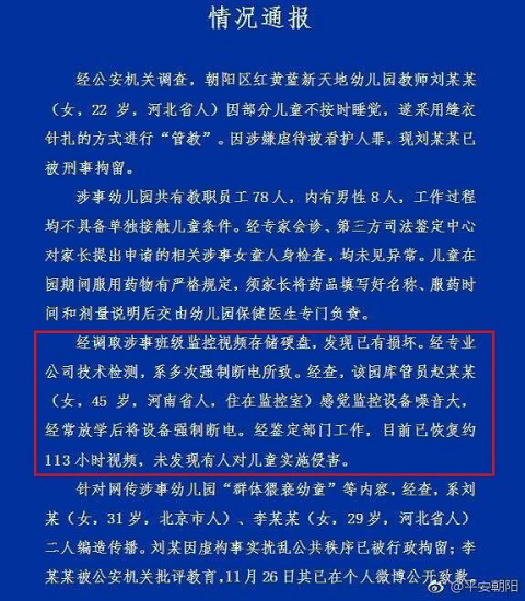 上周发生在北京红黄蓝幼儿园的虐童事件持续发酵。28日晚间,警方也给出了相关的调查结果:【红黄蓝幼儿园针扎行为属实,猥亵、喂药片系编造】
