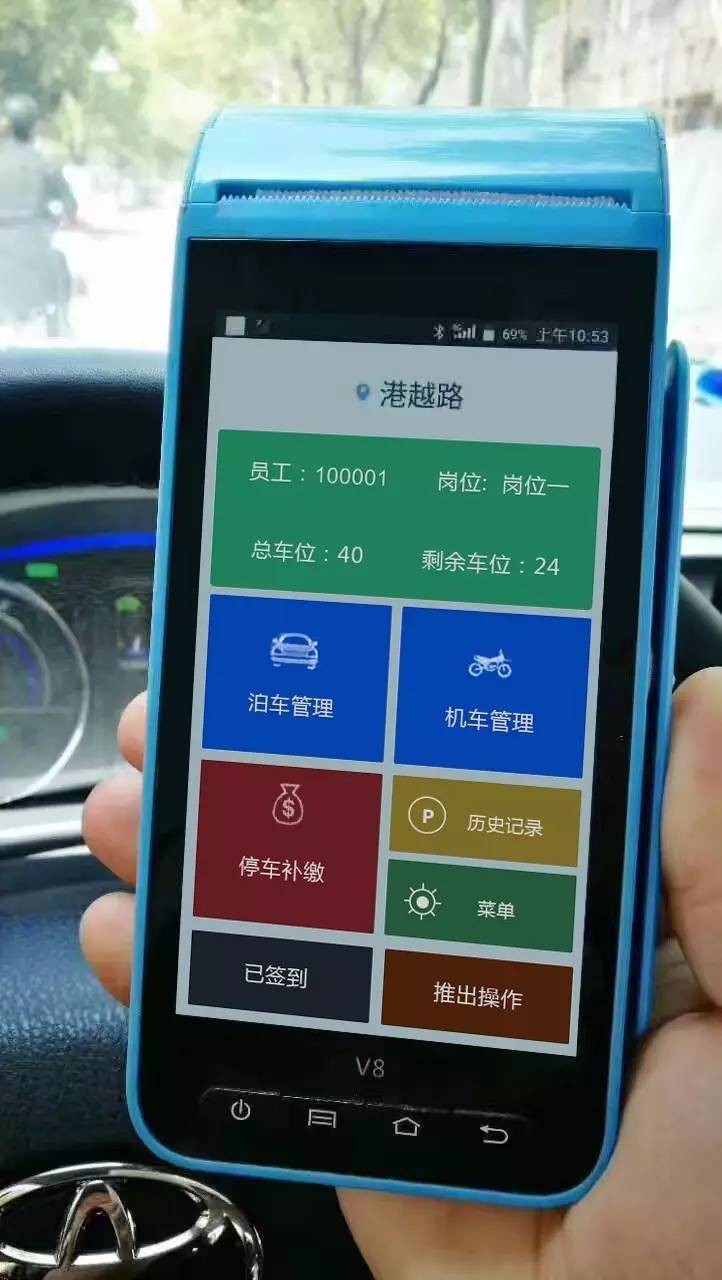 “这个V8真的是我的好搭档,以前车主停车都要开进去自己找车位,现在我可以一键查看还有多少停车位,方便,有时候车主忘记自己车停在哪里,我也可以帮他查询,迅速找到车辆。”停车场收费员许师傅一边熟练操作,一边笑着说着V8带来新改变。