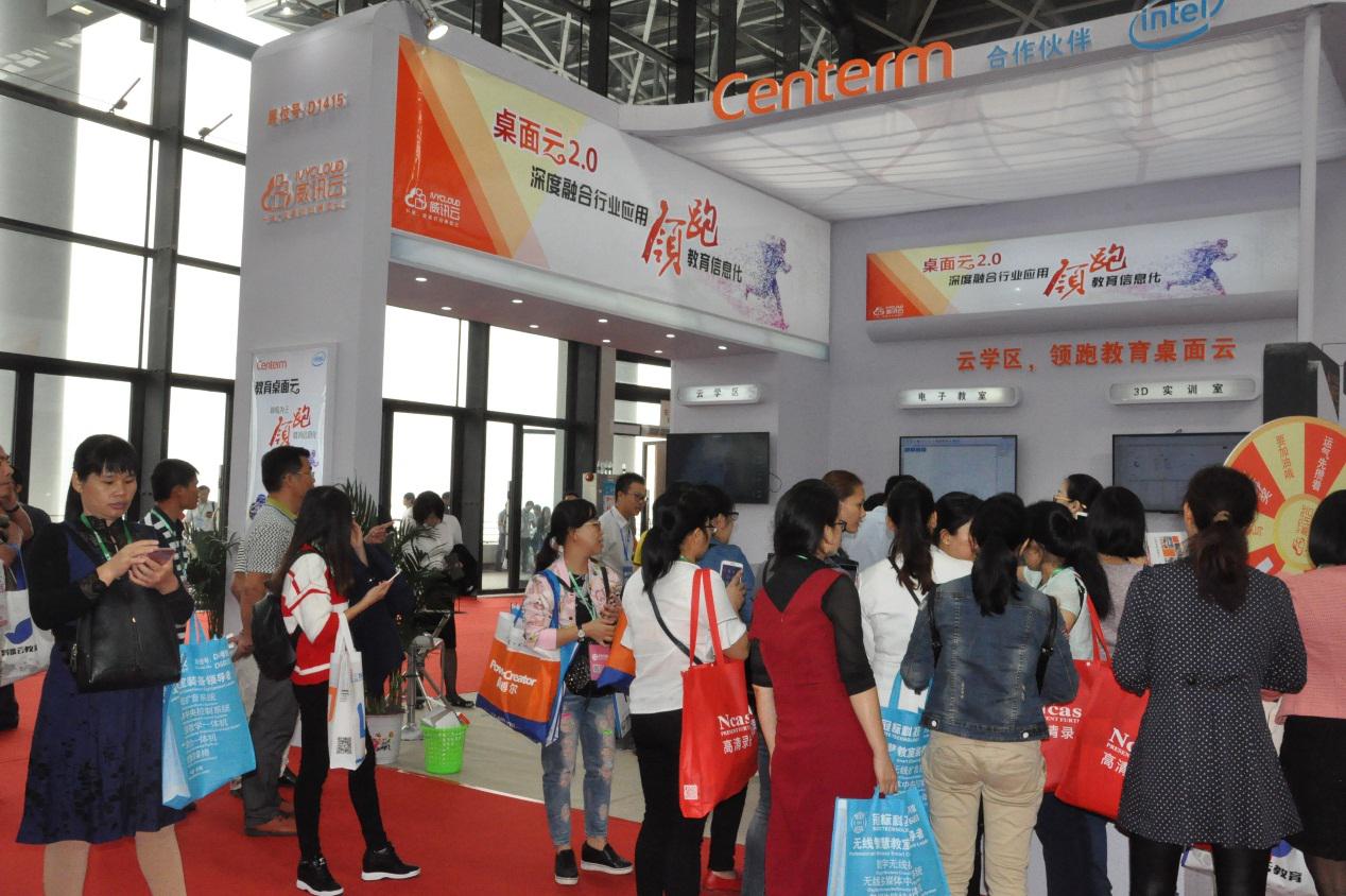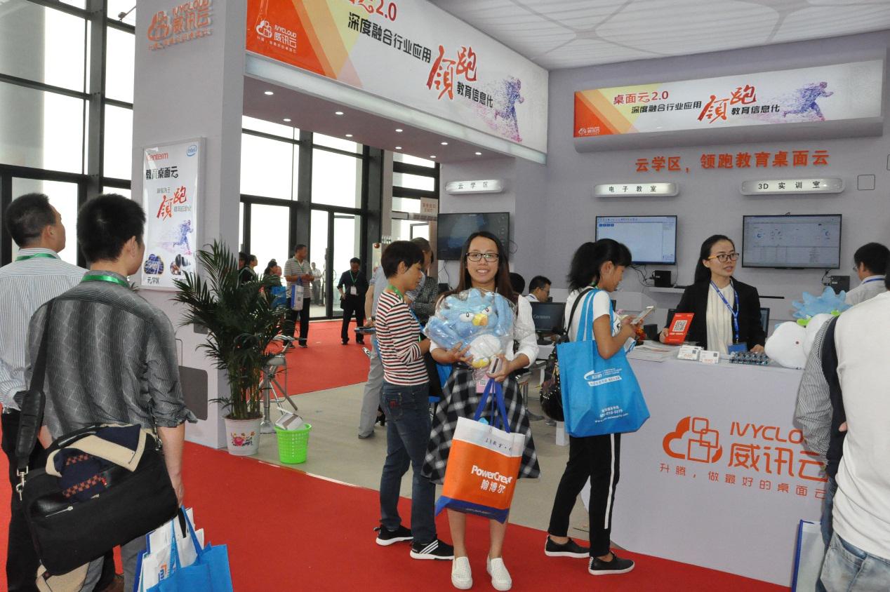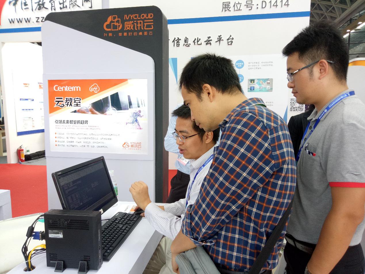 此次展会规模浩大,热闹非凡,作为国内领先的桌面云厂商,威讯云携“云学区”和 “云教室”两大教育信息化产品重磅展出,提出新概念:“云学区,领跑教育信息化”,展区现场被老师们和行业客户团团围住,人员络绎不绝,现场与来自各地的教育从业者、运营商、行业客户一起分享了推进教育均衡化发展的新路子,以及建设新型教育信息化平台的经验。