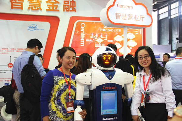 开幕当天,升腾资讯展台迎来了一个神秘机器人,成为了展会现场当之无愧的吸睛王。原来它就是升腾智慧营业厅的看家执勤小能手,它能辅助大堂经理解决客户的开卡、办理简单业务以及咨询的工作。配合升腾自助设备,在柜面之前的工作将全部智能化、自动化,特别适合应用于只有一个人驻守的社区银行。
