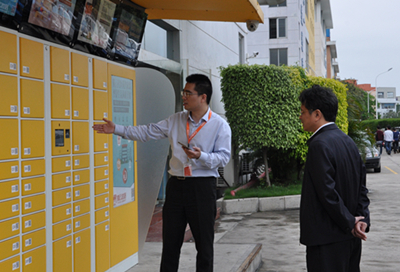 考察过程中,郭锡文主任详细了解了“腾云社区”的项目背景、项目方案、发展情况、核心团队、远景规划等情况。“腾云社区”项目负责人郑焕向各位领导汇报了项目的概况。“腾云社区”作为推动星网锐捷集团实施战略转型的重点项目,是为解决物流末端“最后一百米”问题而创新打造的社区内智能配送服务体系,它主要由腾云小站(社区服务站)、腾云管家(社区服务人员)、腾云宝箱(智能快件箱)三个社区配送服务的基础元素构成。目前,腾云宝箱已在近200个中高档小区完成布点建设,辐射近百万的用户人群;腾云小站正在快速布点建设中,腾云管家也已全面启动社会化运力的招募工作。在考察现场,郭锡文主任还使用了 “摇一摇”、“扫一扫”等自助功能,感受腾云宝箱智能、安全、便捷的用户体验。